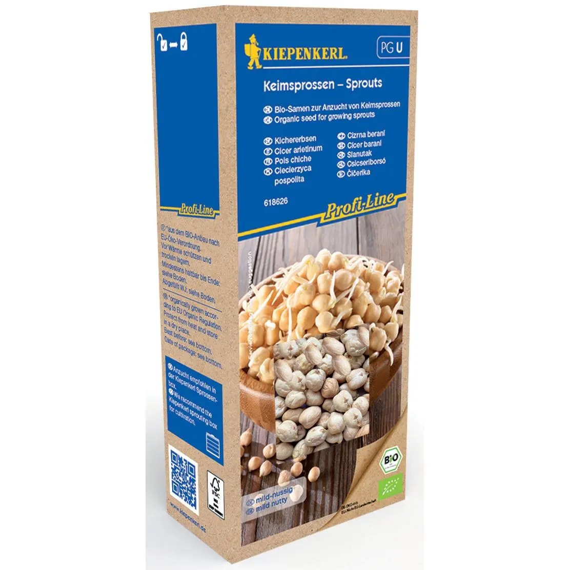 Der Geschmack der Kichererbsensprossen ist mild, nussig und frisch. Die Sprossen der Kichererbse kann man sehr vielfältig verwenden, beispielsweise in Gemüsesalaten, Suppen, Reis- und Getreidegerichte und in asiatischen Pfannengerichten. Die Sprossen der Kichererbse eignen sie sich hervorragend, für den kleinen Hunger zwischendurch. Anzucht in der Kiepenkerl Sprossenbox: Verteilen Sie je 1,5 EL Saatgut in eine Schale mit dem Ablaufventil. Nun Wasser hineingeben und ablaufen lassen. Den Deckel aufsetzen und die Sprossenbox an einen hellen Platz ohne direkte Sonne stellen. 2- bis 3-Mal täglich bis zur Ernte spülen. Nach 3 bis 5 Tagen erntereif.