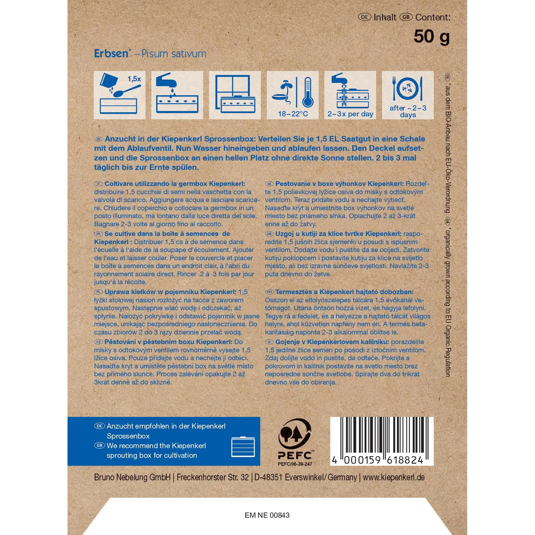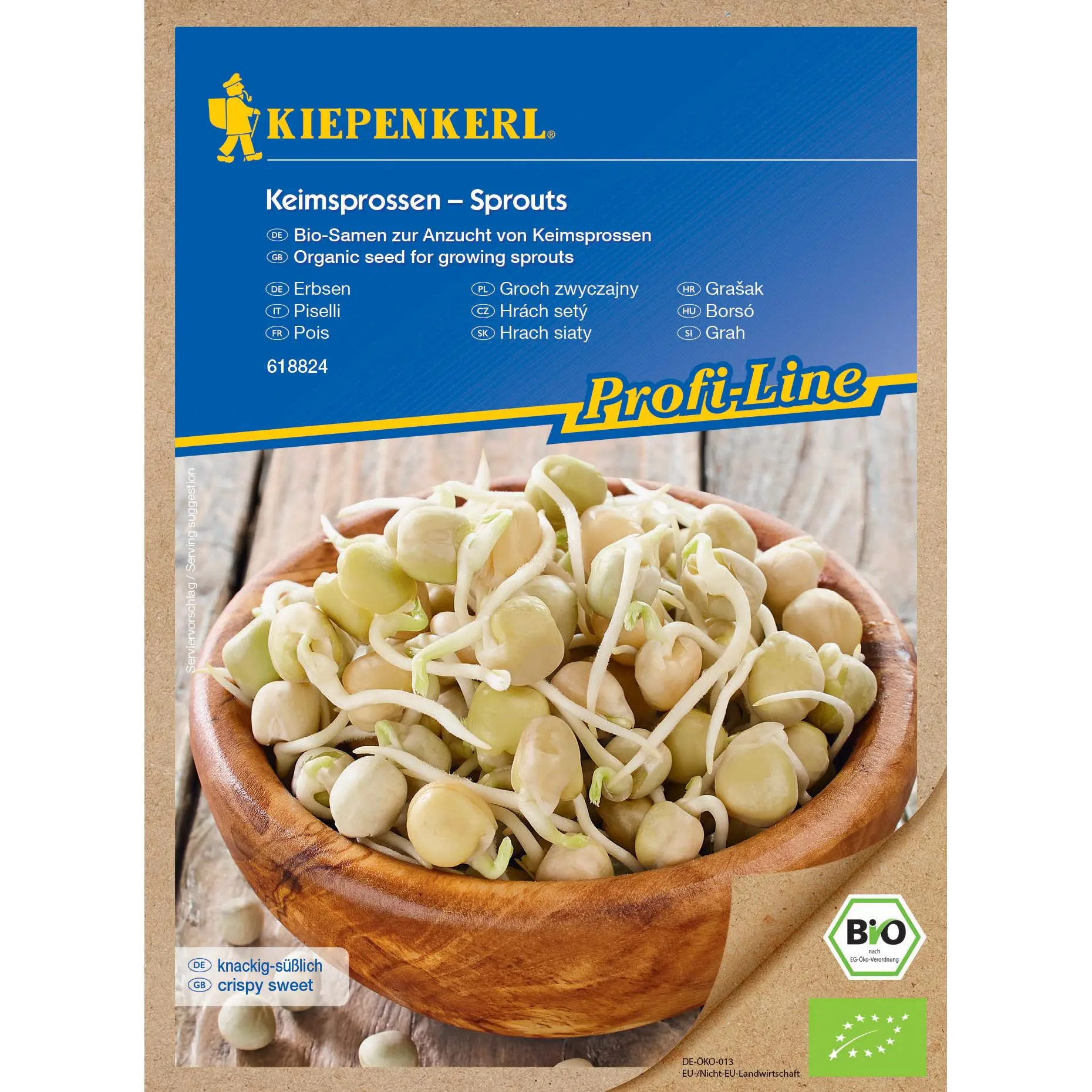 Ersen, knackig-süßlicher Geschmack. Bio-Samen zur ganzjährigen Anzucht von Keimsprossen. 2- bis 3-Mal täglich bis zur Ernte spülen. Verzehrfertige Keimsprossen in 3 bis 5 Tagen.