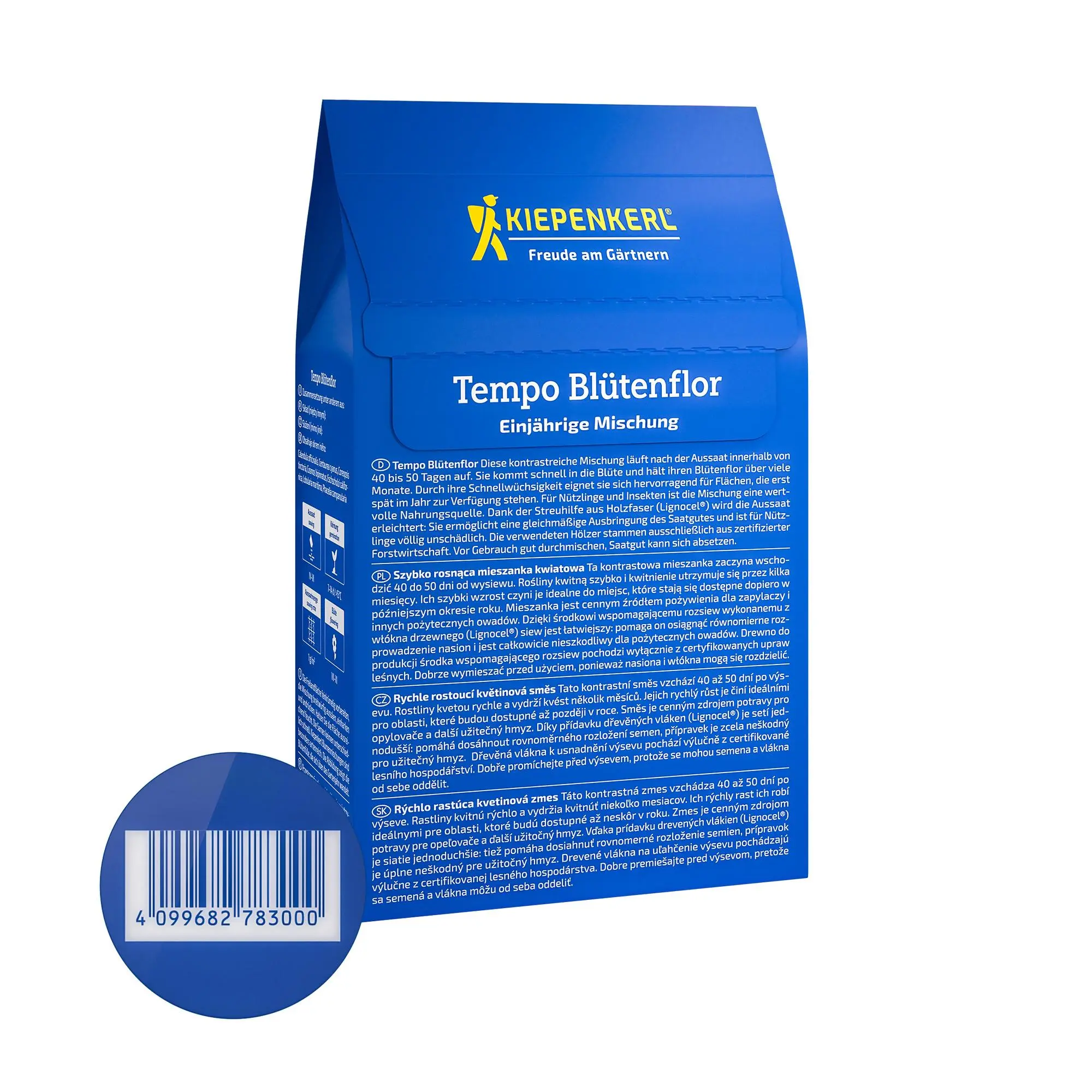 Entdecken Sie die Kiepenkerl Blumenmischung Tempo Blütenflor – eine exquisite Mischung, die mit ihrer Farbenpracht und Vielfalt Ihr Gartenbeet im Handumdrehen in ein Blumenmeer verwandelt. Diese einjährige Blumenmischung begeistert durch ihre rasche Entwicklung und die lebendige Farbenvielfalt, die Ihrem Außenbereich einen beeindruckenden Anblick verleiht.