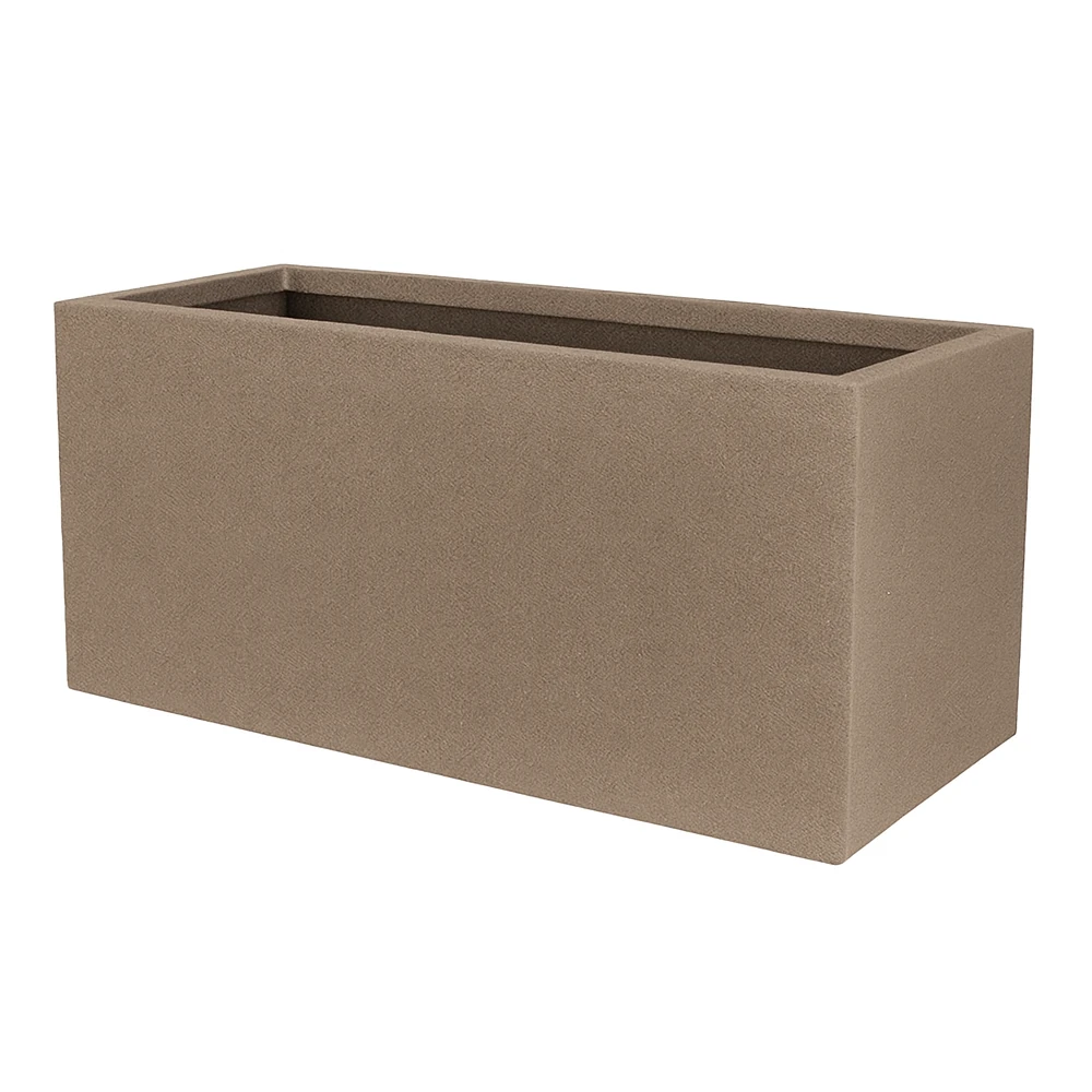 Der Kanta Light Pflanztrog besteht aus hochwertigem GFK – glasfaserverstärktem Kunststoff (Fiberglas-Mineral-Verbund). Diese moderne Materialzusammensetzung garantiert nicht nur eine langanhaltende Verwendung, sondern auch eine naturgetreue, raue Oberfläche, die die Hochwertigkeit und Ästhetik dieses Pflanzgefäßes unterstreicht.