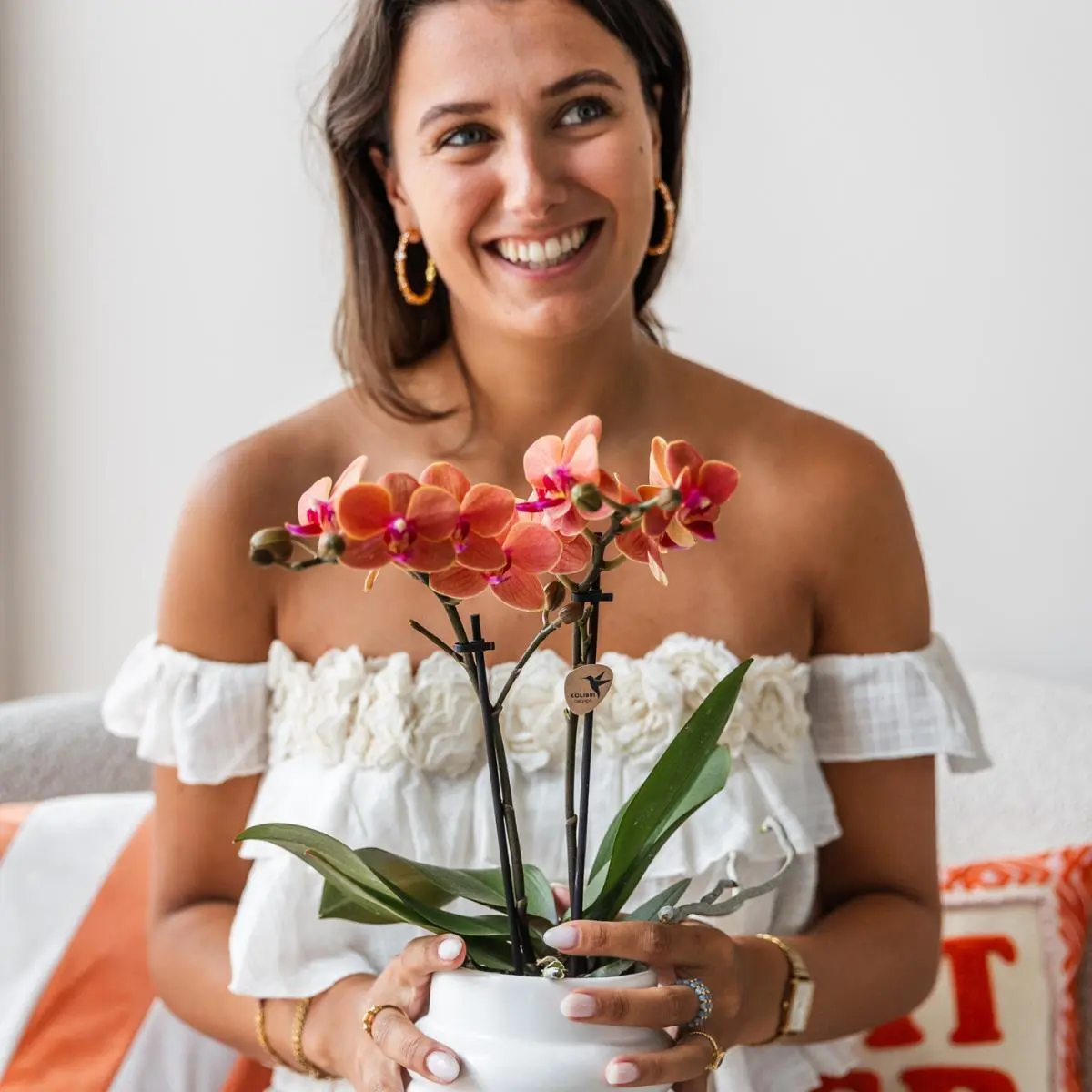 Der COMBI DEAL von 4 orange Phalaenopsis Orchideen vereint kompaktes Format, intensive Blütenfarbe und unkomplizierte Pflege zu einem dekorativen Highlight für jede Einrichtung. Eine stilvolle Wahl für nachhaltige Raumbegrünung – mit weiteren passenden Ergänzungen rund um Orchideen und Zimmerpflanzen im Garden Shop.