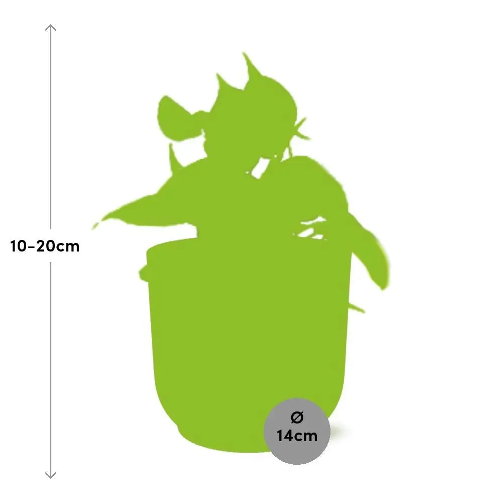 Philodendron Scandens ‘Brasil’ in ELHO Vibes Fold 14cm rosa ist eine pflegeleichte, immergrüne Zimmerpflanze mit dekorativ panaschierten, herzförmigen Blättern, die jeden Innenraum natürlich aufwertet. Ideal für Wohn- und Arbeitsbereiche, Regale, Sideboards oder als hängende Grünakzentuierung in modernen Interieurs.