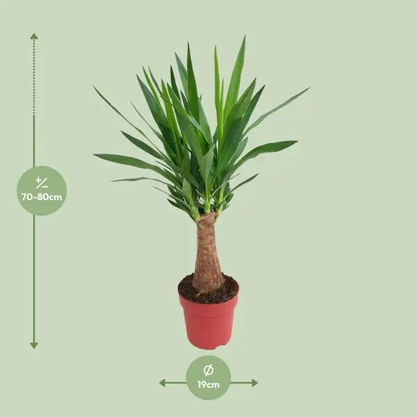 Als Zimmerpflanze bereichert die Palmlilie (Yucca) Wohnzimmer, Flure, Wintergärten und Arbeitsplätze. In den frostfreien Monaten kann sie auch geschützt im Außenbereich stehen, sofern Staunässe und direkte Mittagssonne vermieden werden. Diese Yucca elephantipes ist rein dekorativ und nicht zum Verzehr geeignet. Für die optimale Pflege eignen sich passende Pflanzgefäße, Untertöpfe, gut durchlässige Erde sowie Zubehör für Bewässerung und Düngung aus den Bereichen Zimmerpflanzen, Erde & Kompost, Pflanzgefäße und Gartenbedarf.